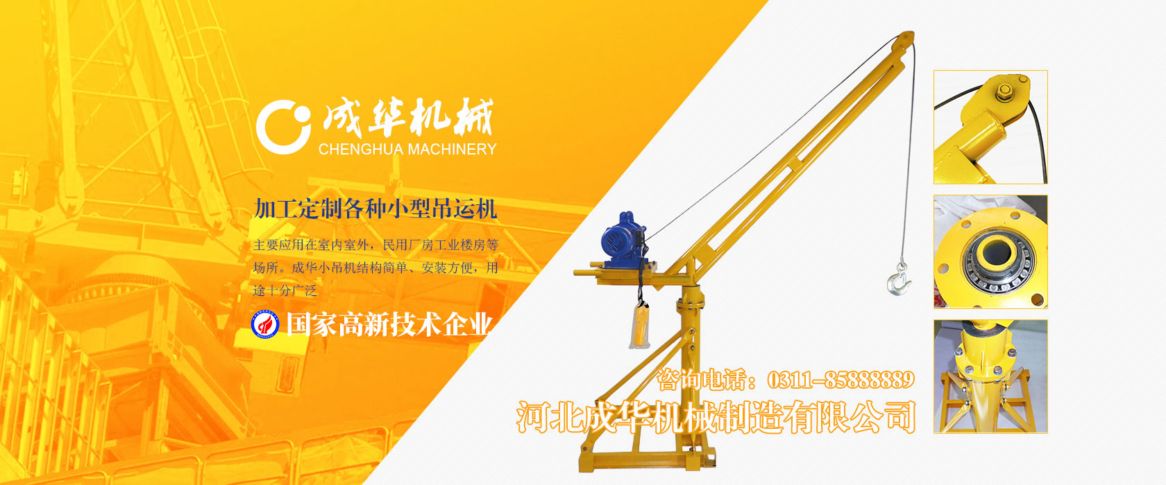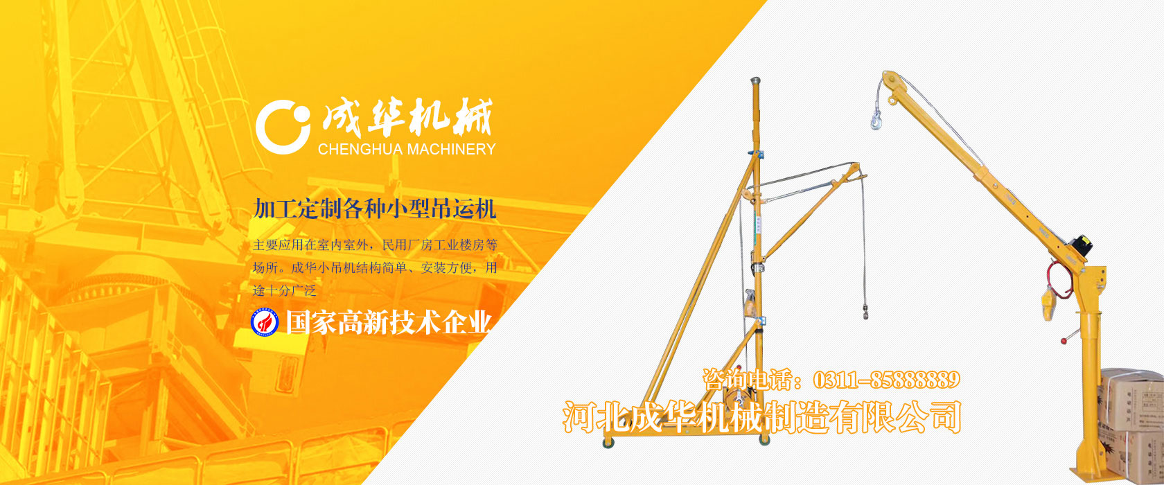 河北成華機(jī)械制造有限公司為國家高新技術(shù)企業(yè),旗下吊運(yùn)機(jī)制造廠是家專業(yè)生產(chǎn)制造便攜式小吊機(jī)、手提式小吊機(jī)附屬工廠,我廠產(chǎn)品主要應(yīng)用在室內(nèi)室外,民用廠房工業(yè)樓房等場(chǎng)所。成華小吊機(jī)結(jié)構(gòu)簡(jiǎn)單、安裝方便,用途十分廣泛,小吊機(jī)產(chǎn)品被廣泛應(yīng)用于機(jī)械制造、電子、汽車...
